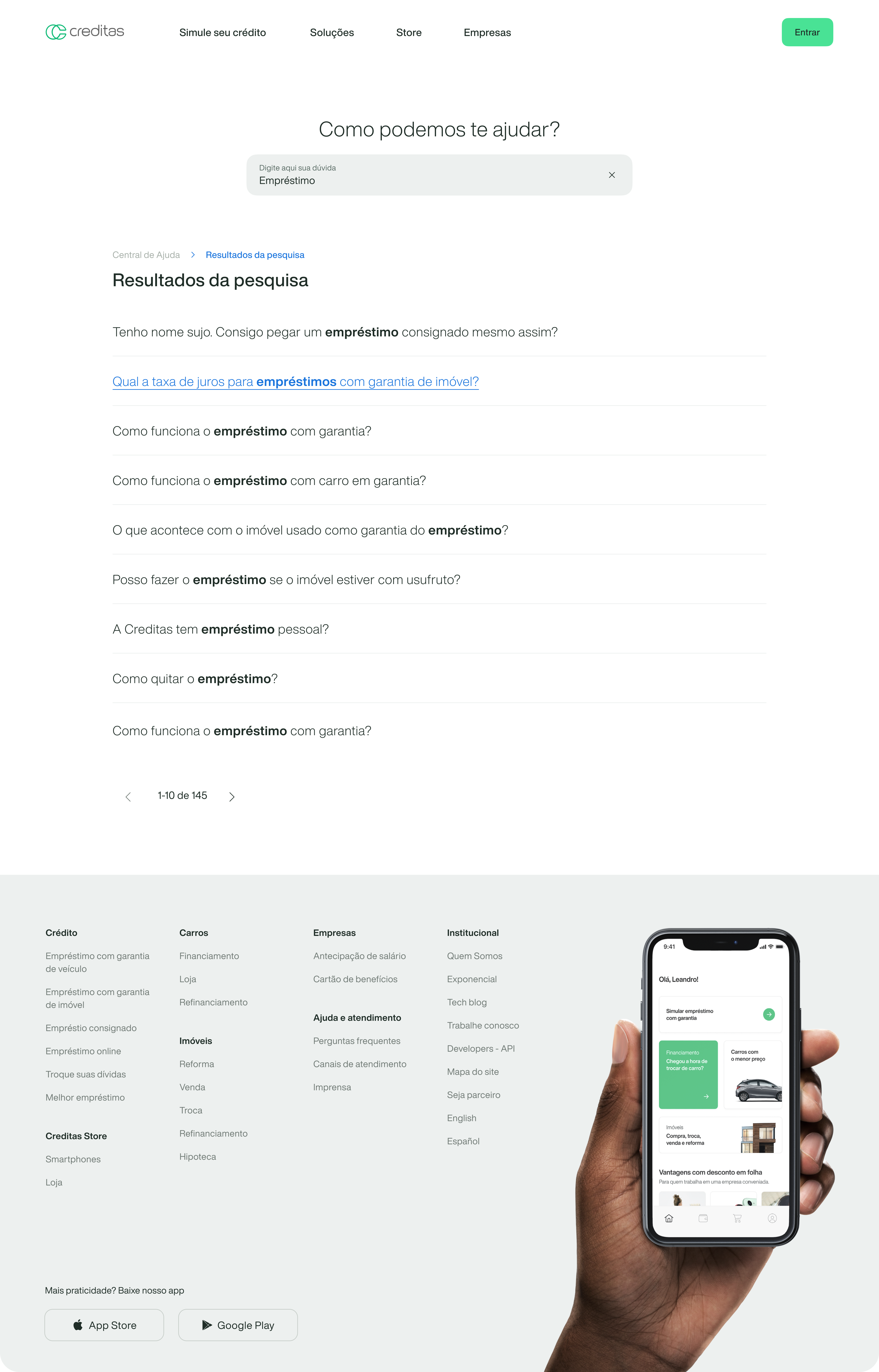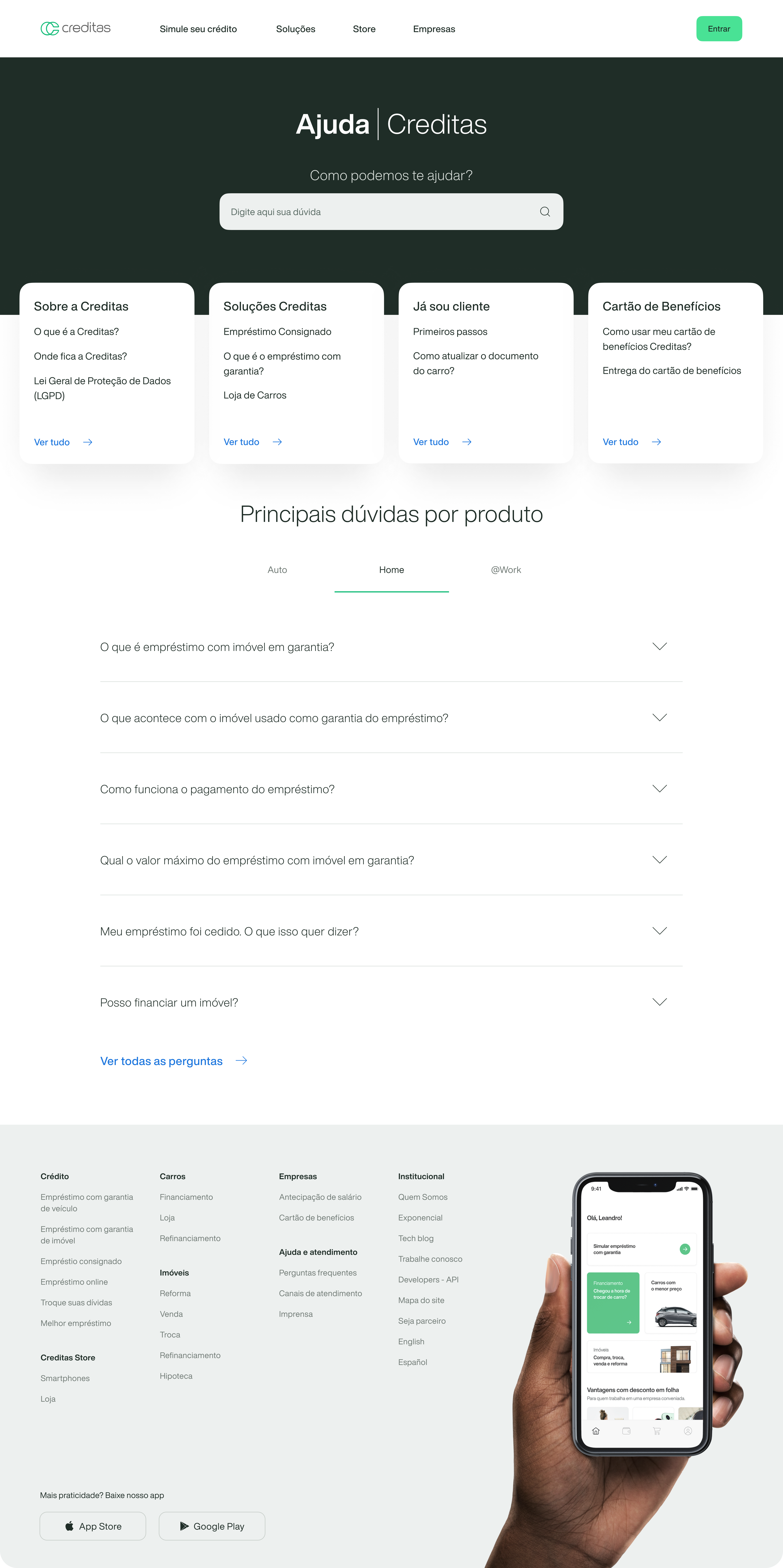 A Central de Ajuda (FAQ) reune as principais dúvidas dos produtos e serviços em um só local e permite que as pessoas consigam entrar em contato com a Creditas via chat Zendesk.